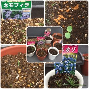 10/13(土)に植えた球根や種から🌱芽がでてきました🌱 ネモフィラはプランターに カスミソウはホウセンカが終わったあとの狭いスペースに種まきしました。 スイセンは昨年葉っぱのみでお花は咲きませんでした😥今回はどうかな🤔 ムスカリは今年新たにタッチオブスノーを購入し、昨年の球根と一緒に植えました❣️ クロッカスも昨年の球根と今年購入した絞り咲きの球根を一緒に植えました。すこ〜し芽が出てきています😊 チューリップ、イキシア、ヒヤシンスの鉢はまだ変化なしです❣️