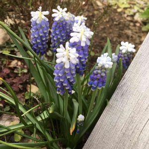 ムスカリ【タッチ・オブ・スノー】 雪の冠を頂いた美しい二色咲き この名で思い出すのは、昔聴いた古い魔法〈ひとひらの雪🔯〉 新しい年、最初の雪の一片を手のひらに受けると願い事がかなうといいます。 今夜は嵐、穏やかな春の安定を願います。