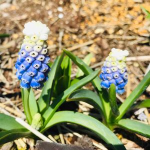 年末に植えた ムスカリ タッチオブスノー 咲きました💠 つぶつぶが可愛い(о´∀`о)♥ 植えっぱなしの庭のムスカリは 葉っぱビロ~ン ビロ~ン😅💦