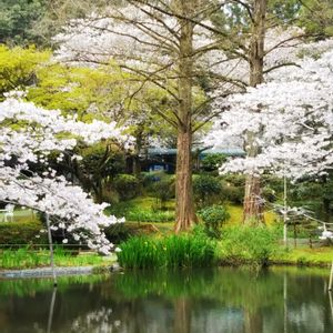 この間のお散歩の時にトイレ借りに寄った近所の養鱒場の🌸です🎵 鱒釣りもできて、鱒料理も食べられるし、お庭の散策もできます🎵 この日はご厚意でお庭を見せていただけることに🎵 広いお庭で、熊本水遺産、名水百選にもなっている湧水があるところです🎵 加藤清正がてを洗ったという御手水で有名です🎵 岩の間から湧水が流れそのみずが庭のあちこちにある池に注いでいます🎵 とても落ち着いて良いところでした🎵 すぐ近くなのにじっくり見たのは初めてで、とても感動して帰りました(’-’*)