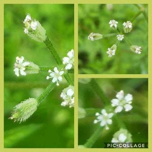 この可愛い子はどなたでしょうか❔💕 5/3に撮したのですが、あげるの忘れてました💦 一本の茎から此の一塊がいくつも出て裏の庭の隅にそっと咲いてました🎵 ハコベよりも、小さな小さな花🥀ですが、私ここに居るよ🎵って💕 通りすぎようとしてふっと目が行きました🎵 見過ごさなくて良かった🎵