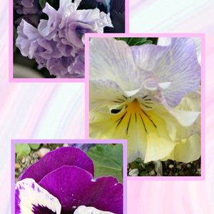 こんにちは😊 ビオラ パンジー マンションの花壇の大きなパンジーとウチのフリフリビオラです😆💗💜
