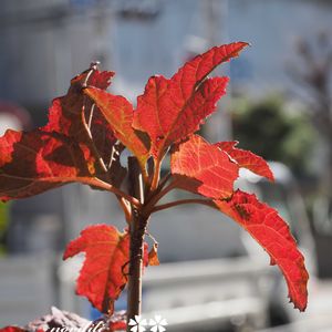 おはようございます。 マンションの花壇にて。 柏葉アジサイの葉っぱが 赤く色づいてます。