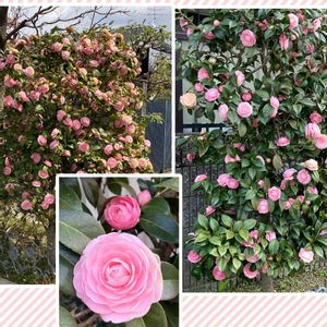 お日様がよーく当たる所の椿と別の所に咲いている乙女椿です。 いっぱい花がついて見頃です。