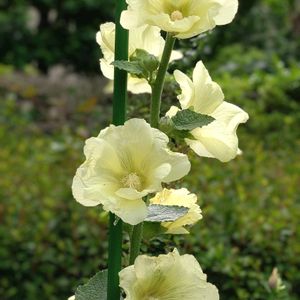 こんばんは😊 💞今日のお花 タチアオイ 薄黄色の控えめな感じのタチアオイです😍😍 2枚目は情熱的な赤。 タチアオイのイメージそのままです♥️
