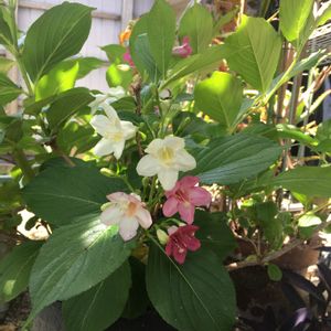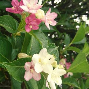 去年の 春の終わり頃 お気に入りの 花屋さんへ行く途中 三色のウツギの木が ありました。 花が 満開でしたよ!