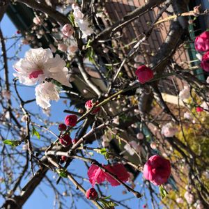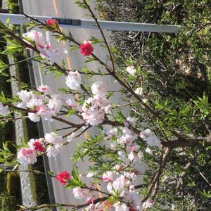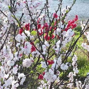 1本の木から白・ピンク・赤・八重咲きの花(^^)鮮やかで華やかで艶やかでした。これって桃の花?なんでしょうか?