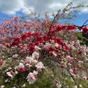 白とピンクの混ざったとても可愛い色合いのお花でした🌸 予定されていたももまつりは中止になってしまいましたが、満開の桜やモモの花でいっぱいで幸せな気持ちになりました。😌🌸