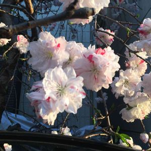 昨日大阪の友人が花見した時の写真を送ってくれました。桜だけれど種類がわからないとのこと。