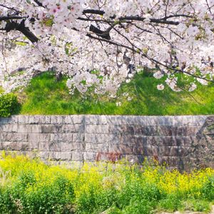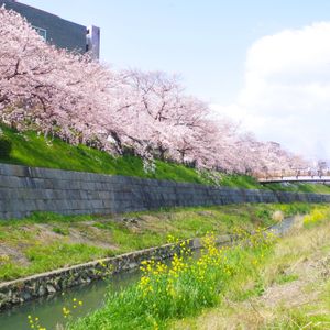 山崎川お散歩。 今年は菜の花も同時にいっぱい咲いているのが綺麗。
