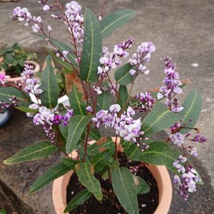 フジのような花と常緑性に惹かれて購入。1m程育ったハーデンベルギアをお店で見たら、とても美しく見応えがありました。まだ30cmくらいだけど、大きく育ってくれるかなぁ☺️
