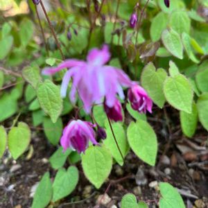 イカリソウ サルフレア。4月2日撮影📸。 常緑性?なので古葉も切り取って良いのか迷いましたが今年はキレイ✨サッパリ切り取りました。結果お花も良く見えるようになって良い感じ❕まだまだ蕾が沢山あるのでしばらく楽しめそうです😊