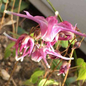 イカリソウ サルフレア。5月2日撮影。やっと庭の方に向いて咲いてくれました(^_^;)。