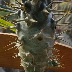 Hello( *´﹀` *)😉🎵 パキポディウム ラモスム 忘れないうちにpost❣️ ちょこんと出てる所がかわゆ♥️けどグサッっと痛いわ😢