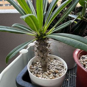 サボテン達に場所を取られ端に追いやられているパキポディウムさんたち。 去年より少しは太くなったようななってないような… 名前は植替え時に札がバラバラになったので合っているかわからないです😵ゲアイだけは区別付きました👍 因みに、 昨夜スマホのガラスを割って☆となりましたので仮のスマホからの投稿です。 GSにログインするのに手こずった〜😂