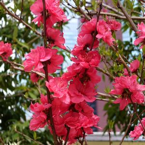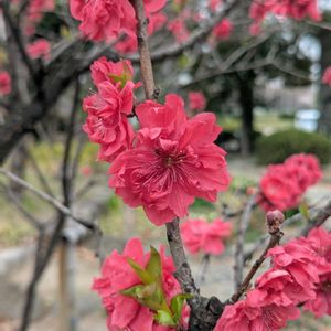 今日の昼休み、近くを散歩途中に見かけたハナモモ。