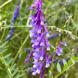 💜ナヨクサフジ 飼料や緑肥用に輸入されたものが野生化して、河川敷や堤防などに広がっています。アレロパシー効果(植物が他植物の生育を阻害する物質を放出すること)も持っており、在来種を駆逐するリスクもあります。 ⚫︎マメ科 ソラマメ属 ⚫︎原産 ヨーロッパ ⚫︎花期 4月〜6月