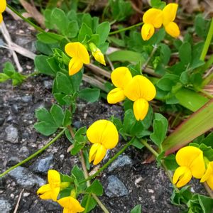 セイヨウミヤコグサ(西洋都草) マメ科ミヤコグサ属の多年草 分布 北海道~沖縄 海岸沿いを歩いていたら、 思いがけなく出会い、 わ~!😃 ミヤコグサだ~😆🙌 と喜びましたが、 「セイヨウ」のつくミヤコグサかもしれません😓 セイヨウミヤコグサは、 *茎は、あまり、地を這わず、株元から立ち上がる。(地を這っていたものもありましたが…) *葉、茎、萼にふつう、毛がある。 (毛は、あまり、目立ちませんでした) *萼片の長さは、萼筒よりも短いか、同長。(同長かな…🤔?) *花柄の先端に、3~7この蝶形花を、ほぼ輪生状につける。 (3個つけているものが多かったように思いますが、4個つけているものもありました。ミヤコグサは、1~3個つけるそうです。) ミヤコグサなのか、セイヨウミヤコグサなのか、迷いました🤥 どちらにしても、初めて、出会うことができて、うれしかったです。 今度出会ったら、識別点を、 よ~く、観察したいと思います。