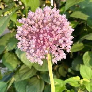 🧄ジャンボニンニク ニンニクの8倍の大きさのニンニクが地中にできます。無臭ニンニクとも呼ばれています。西洋ネギ(リーキ)の仲間です。 ⚫︎ヒガンバナ科 ネギ属 ⚫︎原産 ヨーロッパ ⚫︎花期 5月〜6月