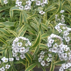 スーパーアリッサム フロスティナイトは 厳しい暑さの時期でも元気なように品種改良されたアリッサムです。 さすがに 真夏や真冬は花数が少なくなりますが ほぼ1年中可愛い花を咲かせます。 薄黄色の縁取りが とってもお洒落で これなら普段は 脇役のアリッサムも主役になれるかも…。☝️✨ ヨーロッパ南部地中海沿岸原産。 アブラナ科ロブラリア属の多年草。
