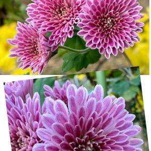 ① 𓂃𖤥𖥧𖥣⋆* 花壇に ピンクのスプレーマムが 黄色に混じって咲いています🌸 アップにすると 花びらがダリアっぽくて 華やかな雰囲気です💕 ② 𓂃𖤥𖥧𖥣⋆* 鉢植えのオキザリス 💖 〜パルマピンク〜 朝はまだ 花が閉じ気味です♡ 横からの模様 上から見たくるくる巻きも とても魅力的✨