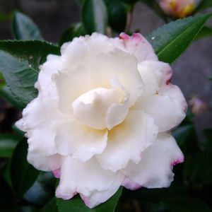サザンカが花盛りになりました🎶 ① お気に入りの秋月🥰 ピンクの蕾から白い花弁が現れます✨💗🤍✨