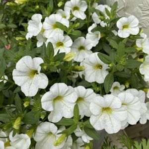 ミリオンベル サントリーさんので6号弱くらいの吊り鉢に1ポット 春に植えて、びっくりするくらいにいつでも元気。 水をやり忘れても、まったくくったりしません。 花がらも目立たず非常に優秀。じつは一度も切り戻していないし、肥料も一回くらいしか😅 来年も絶対植えるなあ、すばらしい🙆