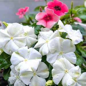 おはよ〜ございます😊 朝からシトシト ☔のお天気です…ケロ🐸 今日は白のお花です🤍𓂃𓈒𓏸 1⃣ニチニチソウ 🌿サマーミスト🌿 花弁に 淡い💚のグラデーションが はいり💧が似合う 涼しげで爽やかな ニチニチソウです🎐∀`* 先日の🍓ちゃんと 一緒に植えつけています♪゚ 2⃣ 【SUNTORY】 ♡すぐ楽♡ ミリオンベル 〈プチホイップ〉 🍓イチゴショートケーキ🍓 2色植え すぐに満開が 楽しめるかわいぃ子が 咲き始めました~🤍❤️ 3⃣八重咲きマツバボタン 𓋪𓈒◌𓂃🤍𓈒𓏸︎︎︎︎𓂃𓈒𓂂🤍𓂃◌𓈒𓐍