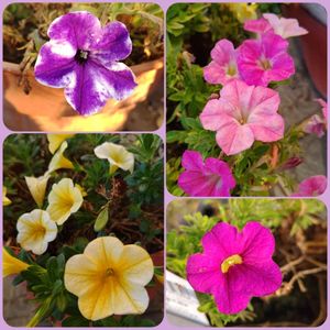 ここにきて復活の夏の花たち𓂂(՞..՞)❀.*・゚ 左のペチュニアはダブルカスケード。 色は薄くなったものの、蕾も沢山ついてます。 右はサンフラさんのサフィニア&ミリオンベルたち。 とらネコだけじゃなく、ミリオンベルたちも丸刈りから復活😂