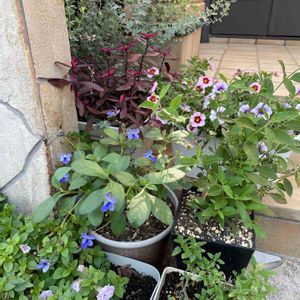 少しずつ夏の花整理して玄関周りが花より緑が多くなってます💦 朝晩が寒くなりましたね 冬越しする鉢、整理する鉢を分けてます 手前のミリオンベルバターポップコーン🍿 弱ってたけど、諦めずにお世話しました それが今綺麗に咲いてくれて嬉しいです