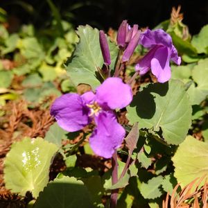お庭に咲いている小さなお花💕 くるくる蕾も可愛い💕 冬を越してくれました😂 なのに……名前忘れてしまいました。どなたか教えて下さい🥺 オーブリエチア斑入りだと教えて頂きました❗ ありがとうございます❣️🥰