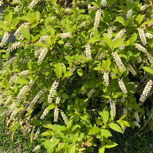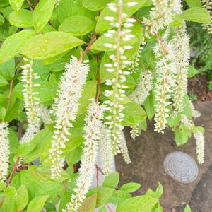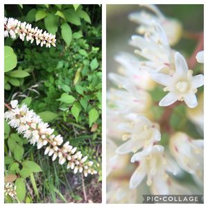 仕事帰りにドラッグストアに立ち寄り、帰り道でコバノズイナのお花に出会えました 別名ヒメリョウブでお花はリョウブに似ているとか⁉️ アメリカズイナの別名もありました コバノズイナ(小葉の髄菜 ズイナ科<旧ユキノシタ科> ズイナ属 落葉低木 花期5,6月 原産地:米国東部) 庭木や盆栽に植栽される。穂状の花序に多数の小花をブラシ状につける。花弁は5、雄蕊5、雌蕊1。 西日本に自生する日本固有種にズイナ(髄菜 別名嫁菜の木)がある。この名前の由来は、枝の髄を行燈(あんどん)等の灯心にし、若菜が食用にされたことに由来するという。