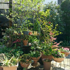 玄関から。 ごっちゃゴチャだけど、新緑に癒やされる😄