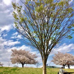仕事で鹿児島へ来ています。 鹿児島桜満開です🌸 桜からはまだ葉が出ていません。 だのに後ろの木、新緑がキラキラと眩しい。 春と初夏が並んでピース✌️ (4/15 鹿児島中央駅付近の公園にて)