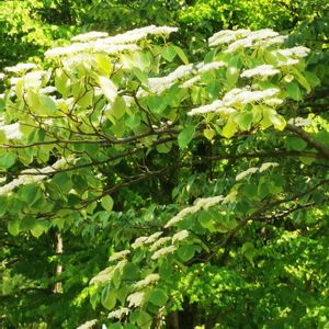ミズキ 新緑の季節 真っ白な細い花が木々を飾ります。