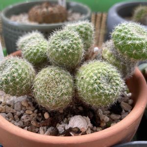 春が近いので、少しずつ植え替えをしてます😃 分けたら鉢が増えてゆく…🪴🪴🪴 ホントに置き場所、どうしよう ①広がってゆくブラベルさん このタイプは大好物なんだけど、鉢からはみ出しがち、隣の邪魔になりがち… あちこちで場所の奪い合いになってます 🏷️今日のお花 サボテン🌵 ②希望丸 まん丸が可愛かったのに、ちょいと伸ばしてしまった😞 サボテンの花を見たことないので、この子で見たいなと思ってます ③高砂 ふわふわでかわいい💕 ちょっと毛が増えた気がする😊