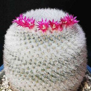 Mammillaria albilanata 希望丸、綺麗で眺めていたら棘が白い花に見えてきます😊🤍 触ったらまあ棘ですね🙌