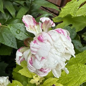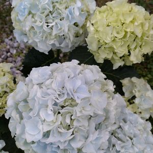 悩んだ挙げ句、ホームセンターの園芸コーナーにいた、名前の不明な紫陽花をゲット😆 このフリルが重なったような八重咲きの花びらがめちゃくちゃ可愛い💖 しかも、花色が薄黄緑から薄青に変化していくなんて凄く好み〜🥰