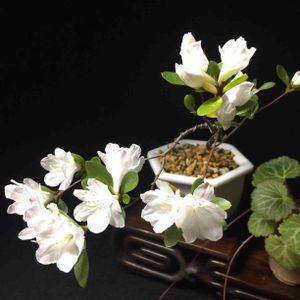 こんばんは🌇 ベランダ組の実生2年生のツツジです 盆栽としてはまだまだですが… 真っ白な花びらの中に薄ピンクが なんともいえません。 散る前に…(ᵔᴥᵔ)