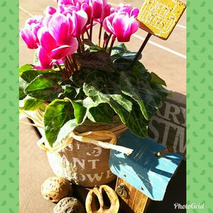 ❀.(*´▽`*)❀.オハヨウゴザイマス💓💓 何この風!!めっちゃビュービューで隣のアパートの紅葉の木から落ち葉が舞い上がってきたよぉ~Σ(゚ロ゚;)ビックリしたわぁ~🍁🍁🍂🍃 シクラメンこの前お迎えしてきた😆✨💕 ピックとブリキハウスはmyさんの手作り(♥ω♥*)キュンキュン♡*゜