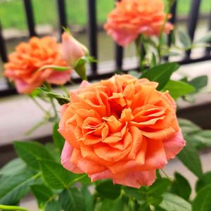 スーパーで見つけたミニバラさん🌹 オレンジ色とピンクのツートンが夕焼けみたいでとっても鮮やかで一目惚れ💕 イングリッシュローズっぽいけど、プレートがないから不明。 398円とは天の思召しかな✨