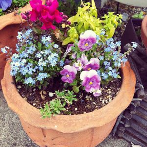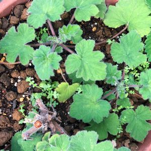 ペパーミントゼラニウムの鉢に蒔いた、ネモフィラの種から芽が出てきました。咲くかなー、楽しみです。