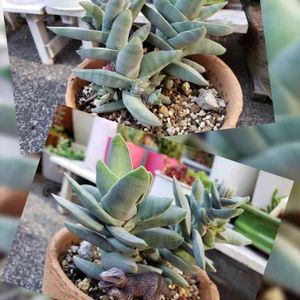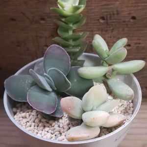 休日の多肉作業その1 CoCoさんとこで買ったものと、以前二和園さんで買ったクラッスラのコラボ😁 どうしてもモルガンビューティーはクラッスラに見えない😬