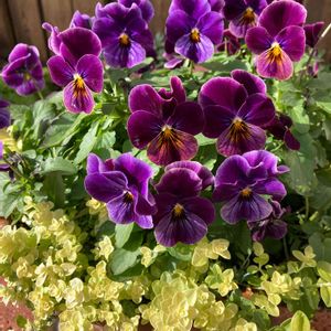 ビオラ ソルベ アンティークシェード 植え付けから1か月、花が増えてきました ビオラよりヘリクリサムライムミニにキュンとする毎日。明るいイエロー小さい葉が可愛いな😍