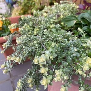 3月末に作った寄せ植えの現在です。😃 ネメシアと、オーブリエチアは消えそうになってるけど、 他のオステオスペルマムとブラキカム、ヘリクリサム ライムが元気でいい感じです。🎶 肥料はあげるけど、細かすぎて終わった花をろくに✂️してないブラキカムなのに 次々お花咲いてくれるありがたい子なんですね。ʕ •́؈•̀ ₎ いつまで頑張ってくれるかなー