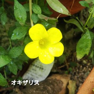 こんにちは〜〜😊🍀 小さな鉢を何個か置いてあったのを退けたら、小さな葉っぱが出てい手、あっという間にはなが咲いちゃいました 👍😄💕💕 オキザリスは分かるのですが、種類までは…❓🤔💦 取り敢えず、大好きな黄色だし、このまま鑑賞します🙋🍀🍀