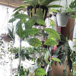 ホヤ カリストフィラ 7号 2020.05.23 5号吊り鉢があるにもかかわらず仲間入り! 立派! つるが長いからお花咲かないかなぁ 花が見たいなぁ😊