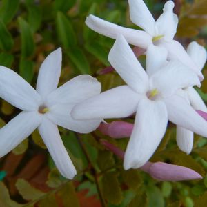 ハゴロモジャスミンです.去年の秋に,強剪定と植え替えをしたので,ことしの花はこの一房のみです. 撮影 May 7, 2022