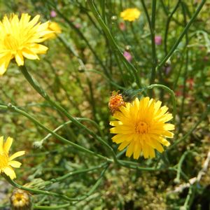 疎水わきの花壇に,目立つ黄色い花が咲いていました.ブタナだそうです.ヨーロッパ原産で,日本では帰化植物です.タンポポモドキとも呼ばれています.周囲に同じ植物は見当たらないので,花壇を作ったときに紛れ込んだのかもしれません. 撮影 May 22, 2022