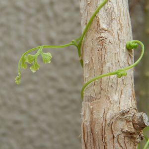 コーヒーの枯れ木に,巻き付いて登っていく植物に気が付きました.シダの仲間のように思えたので「シダ植物 ツル性」グーグルにお伺いしたら,一発で出てきました.カニクサだそうです. 撮影 Jun. 5, 2022